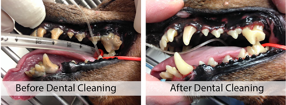 And as a groomer, I see lots of dogs with teeth like the second picture, when tartar has built up and our owners are being advised to get the teeth cleaned… what the vet means is the teeth need to be descaled under aneasthetic to remove that hard build up, including tartar under the gum line - shown below.